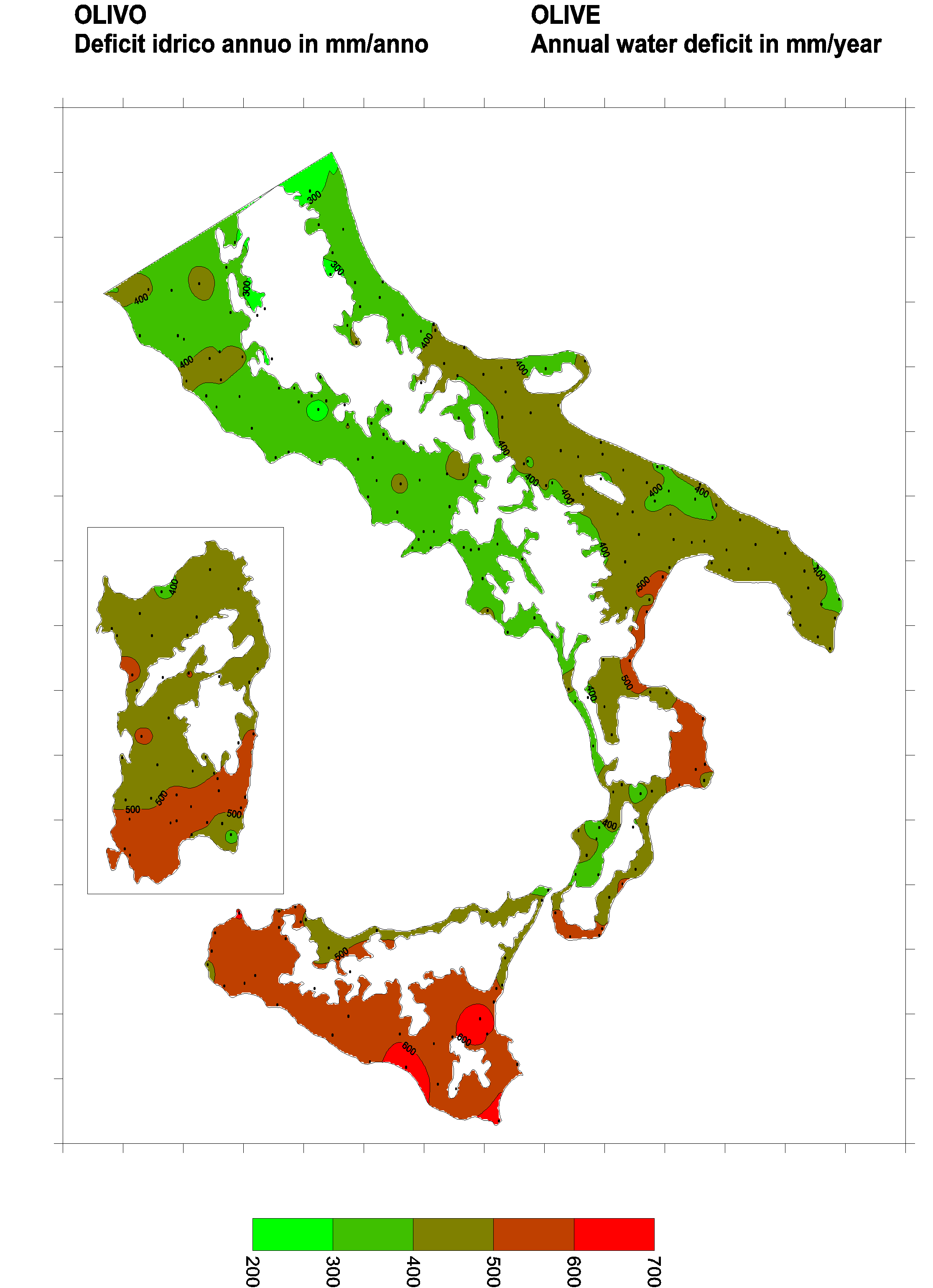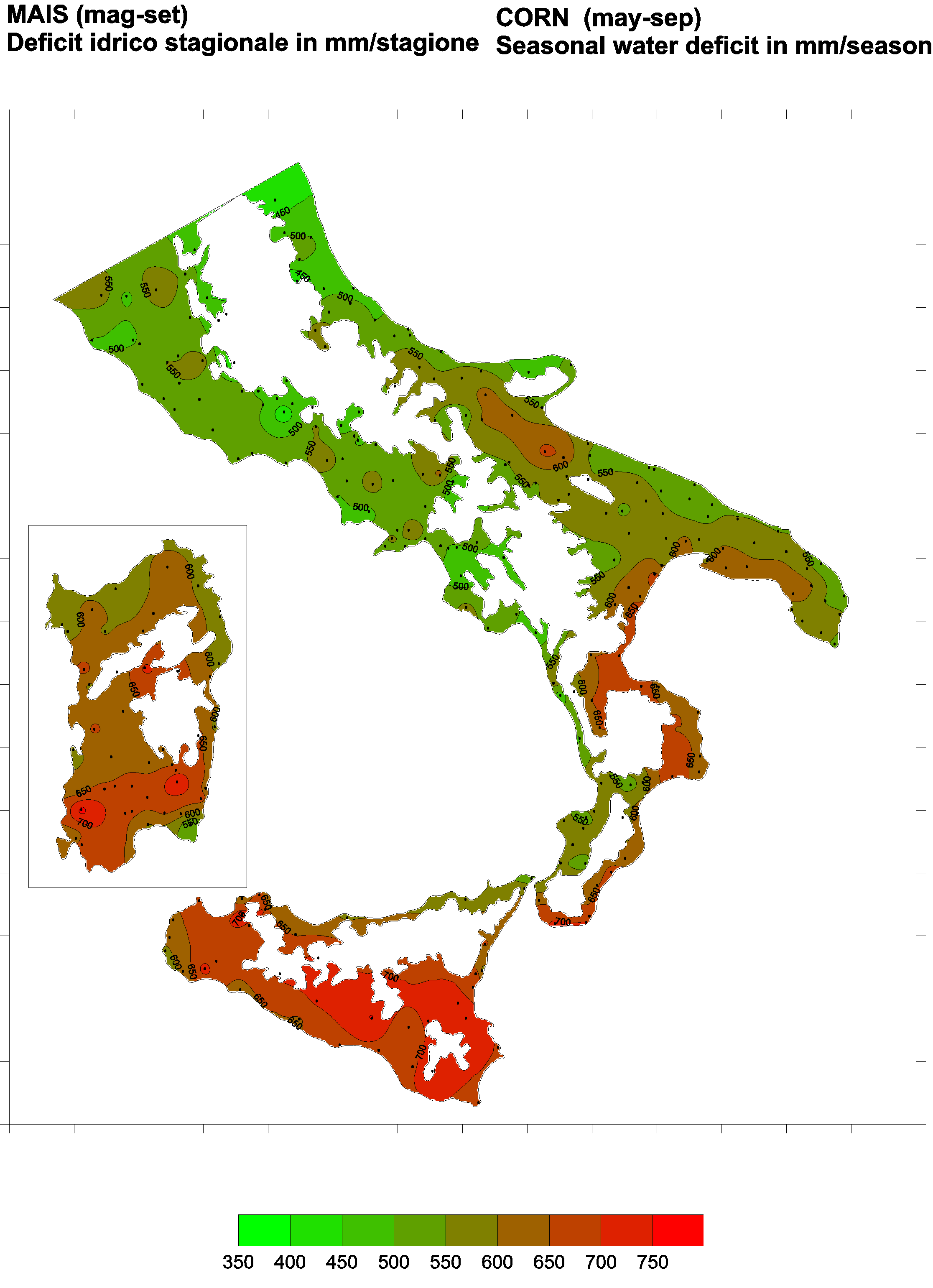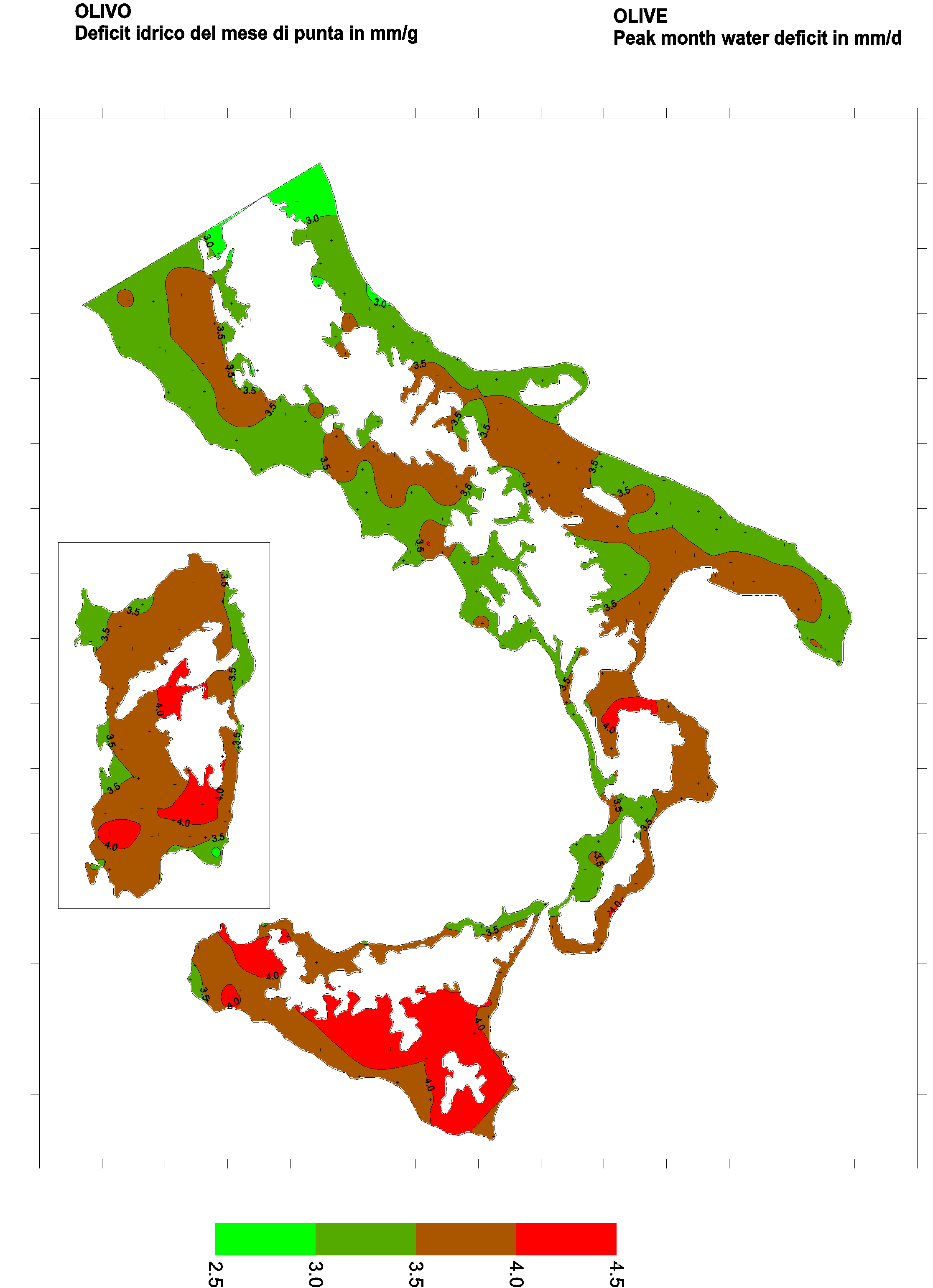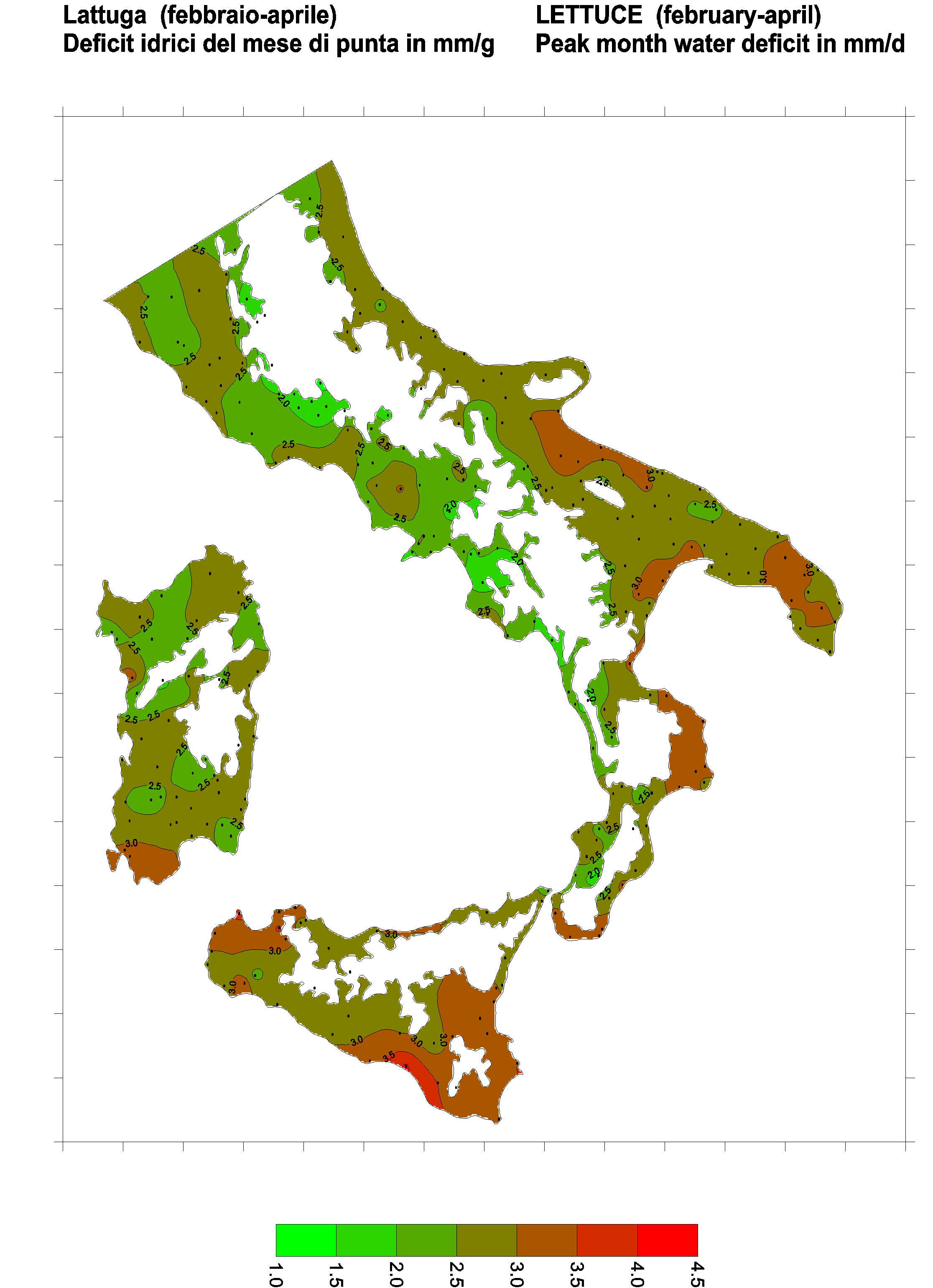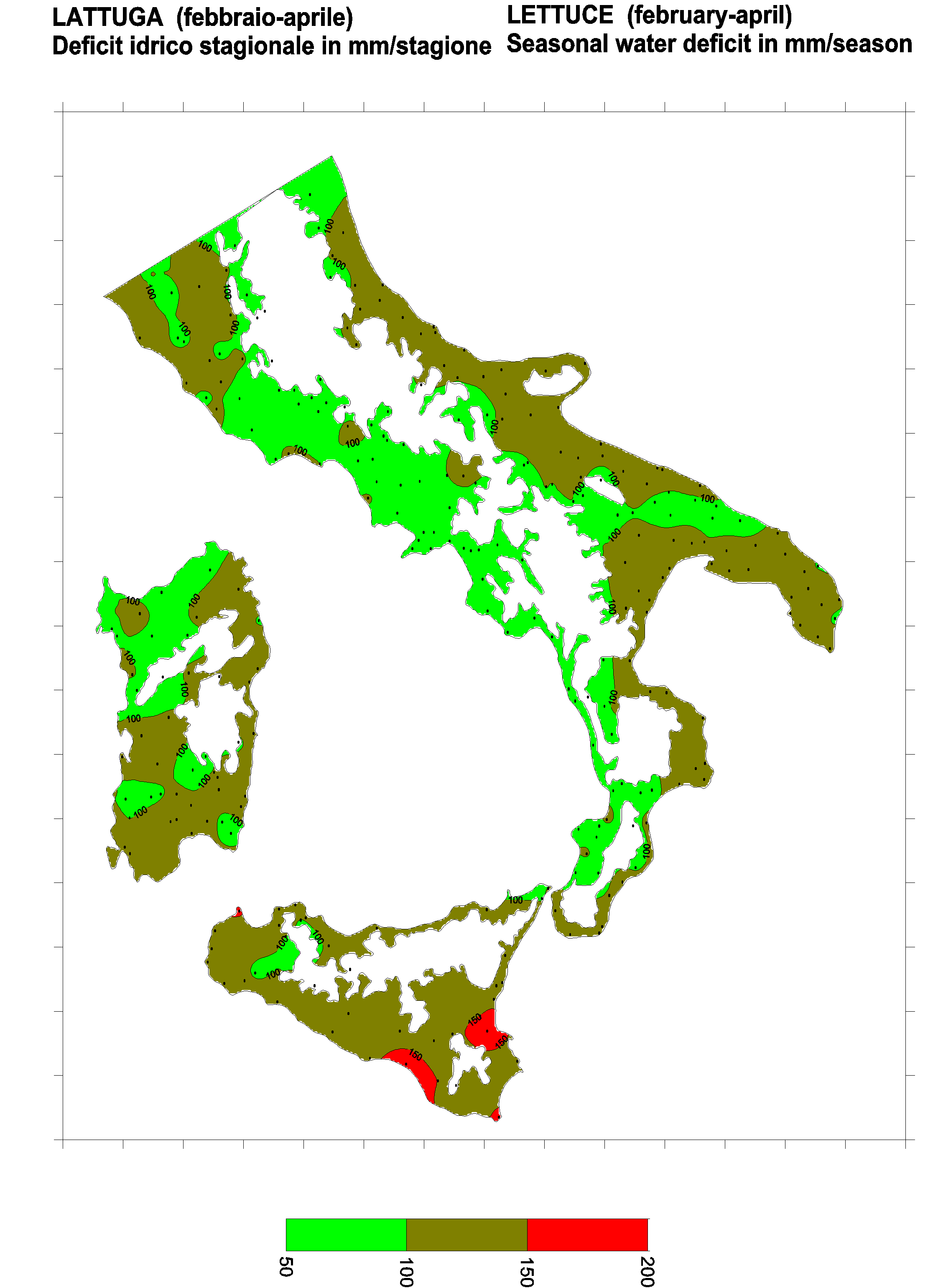 The water deficits mapped refer to a selection of crops cultivated in the periods of the year typical of Southern Italy. Deficits may vary considerably according to different periods and cultivation criteria.