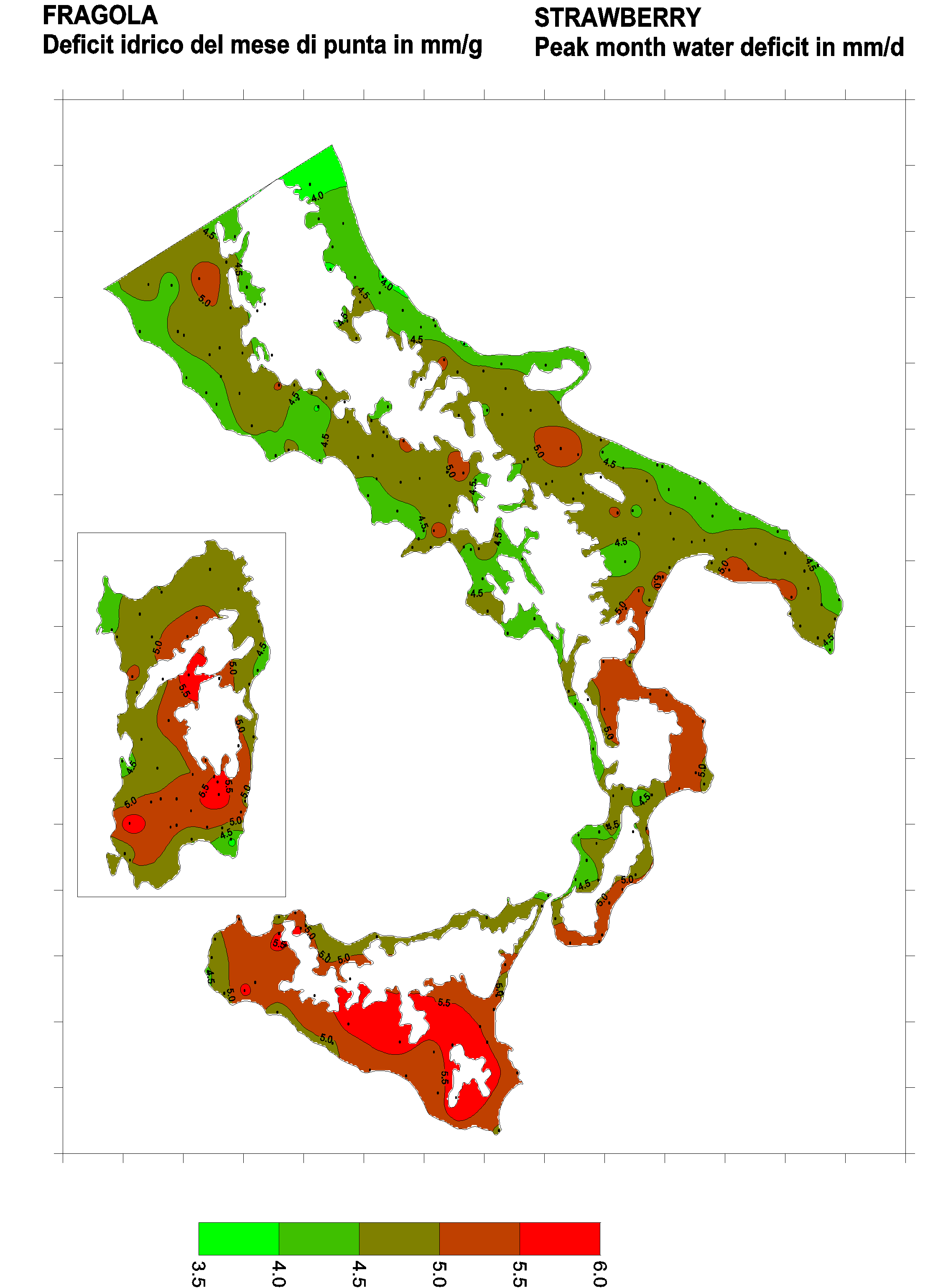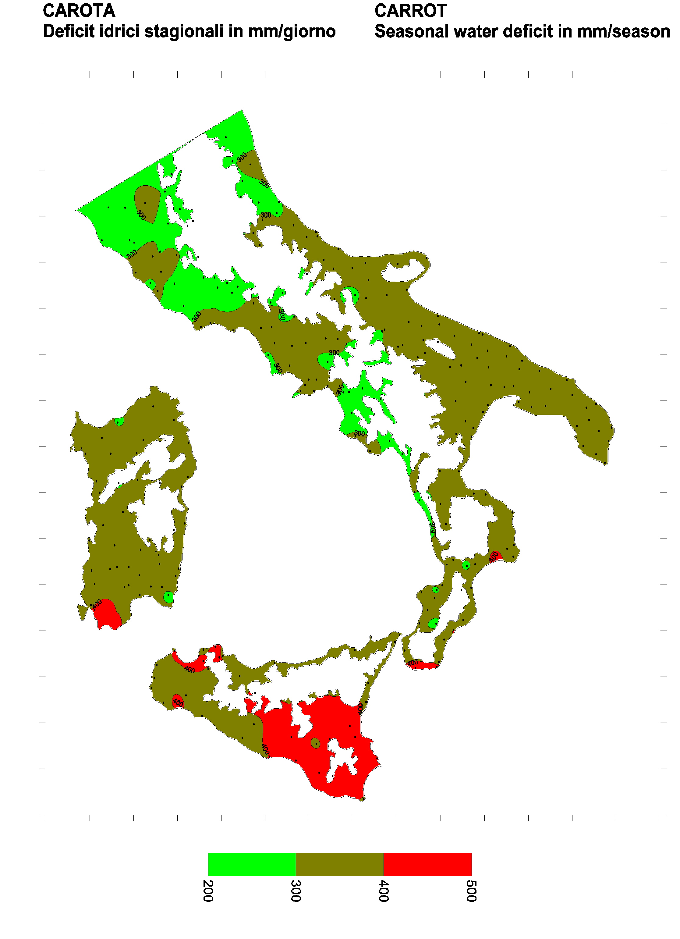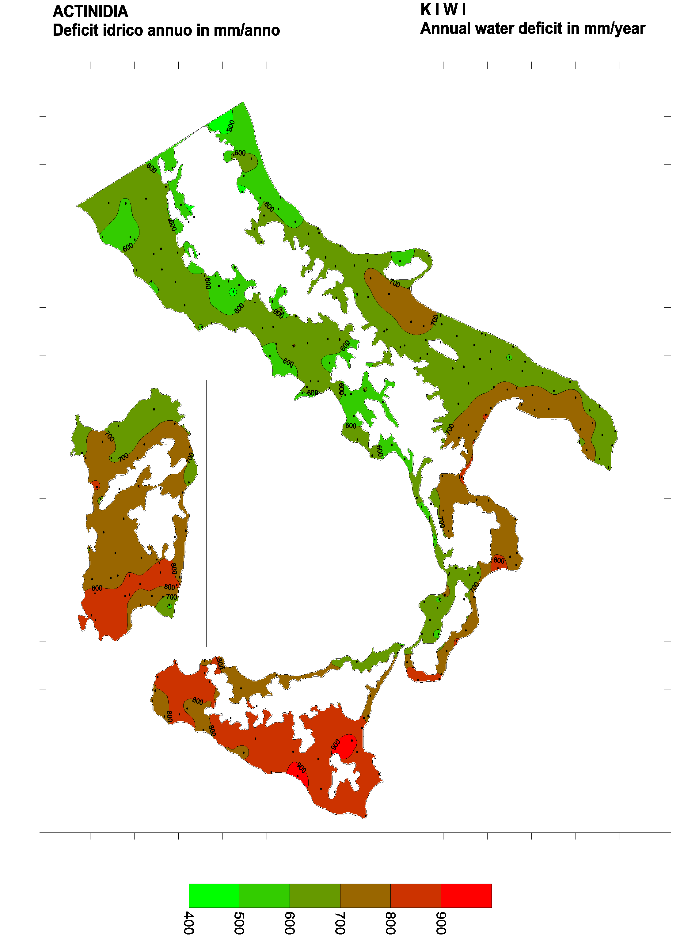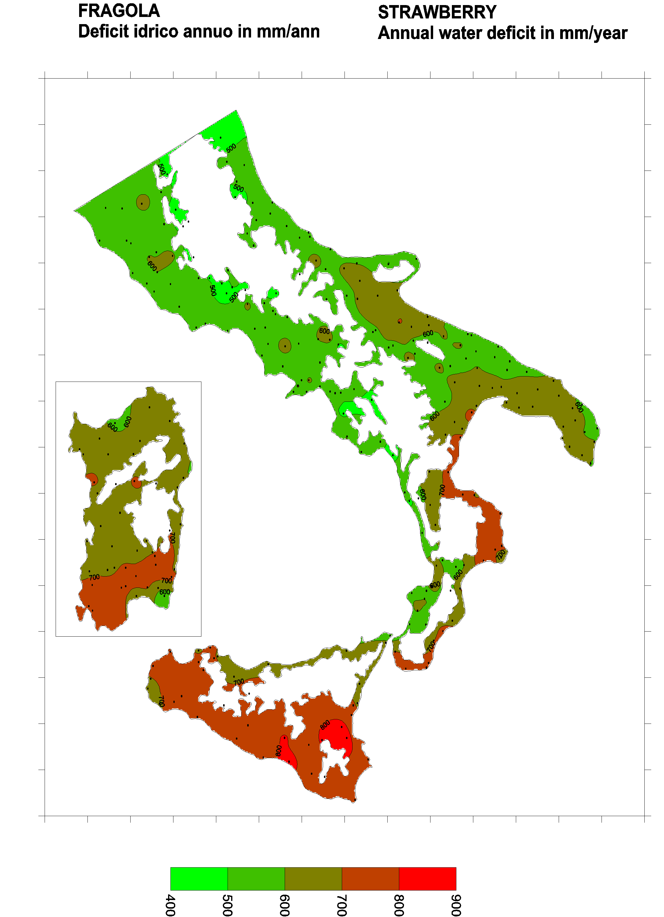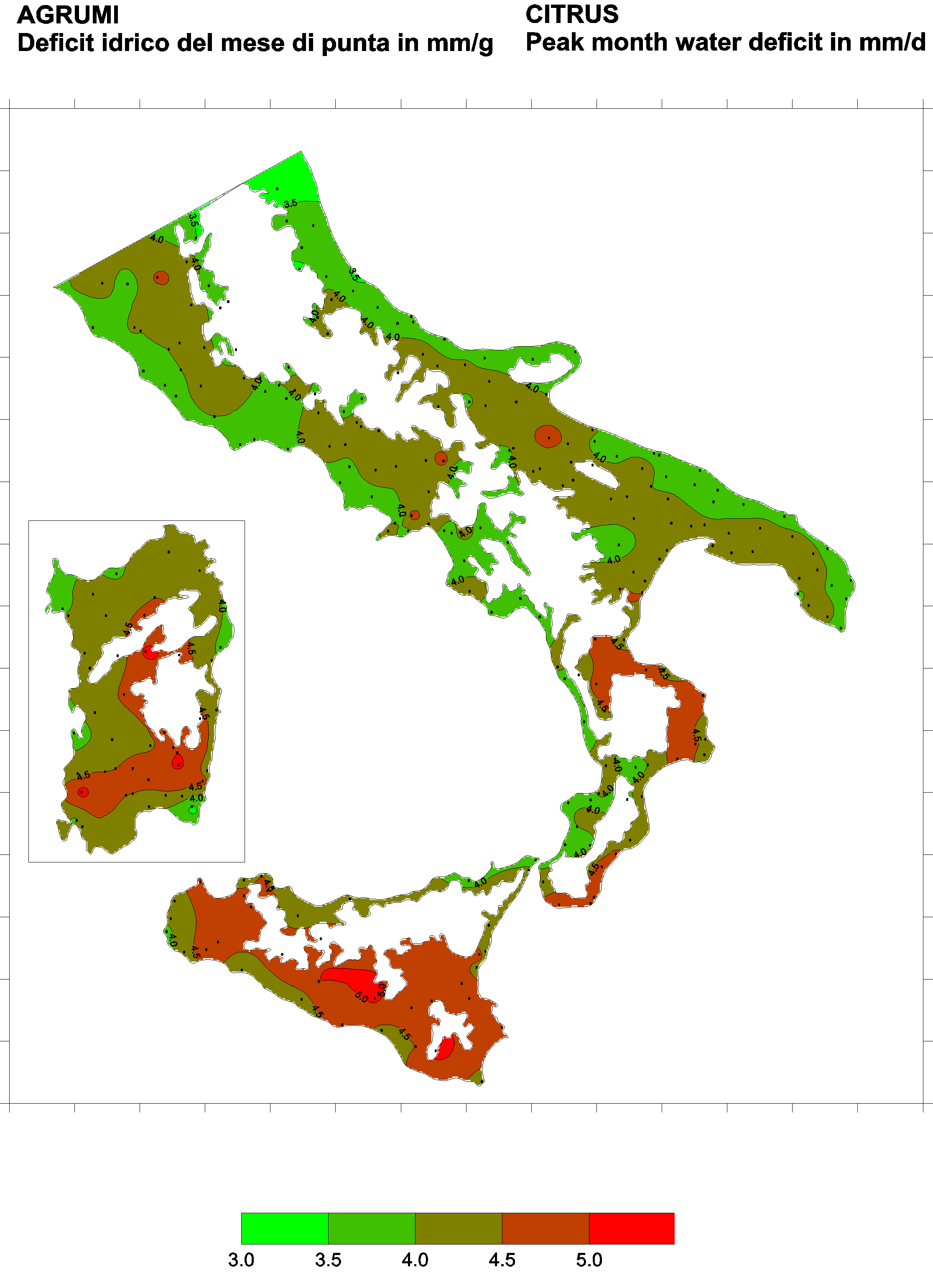 The water deficits mapped refer to a selection of crops cultivated in the periods of the year typical of Southern Italy. Deficits may vary considerably according to different periods and cultivation criteria.