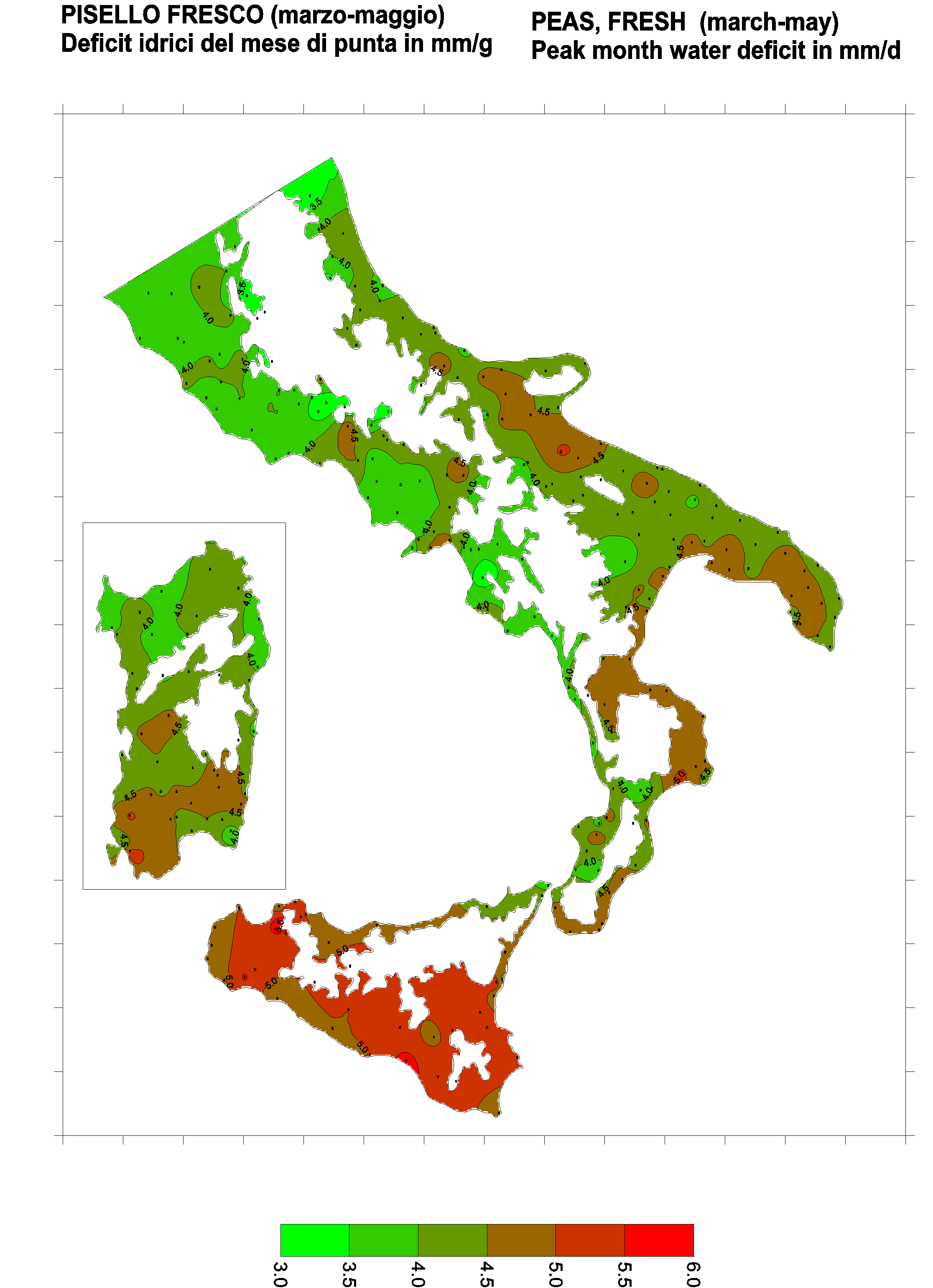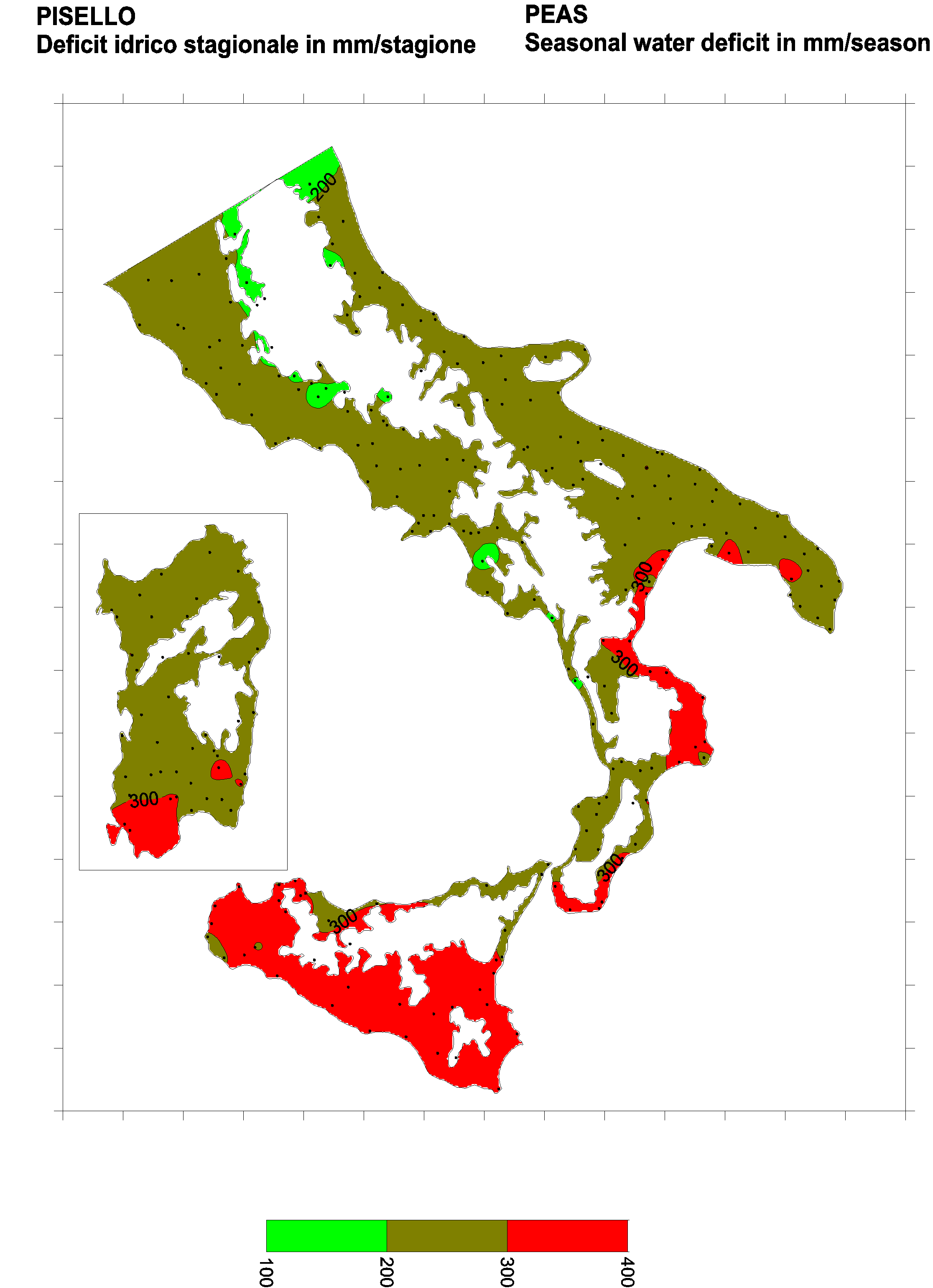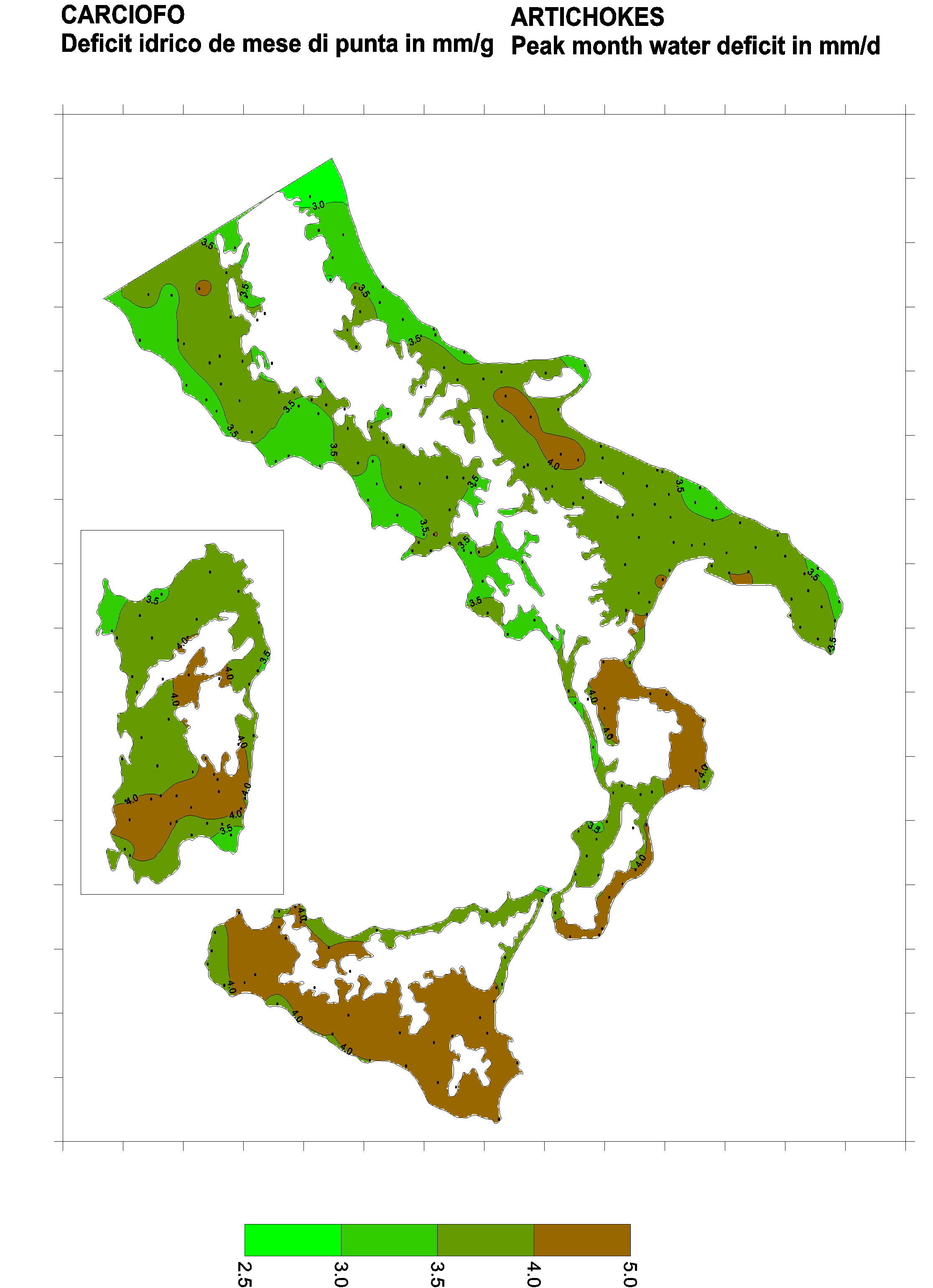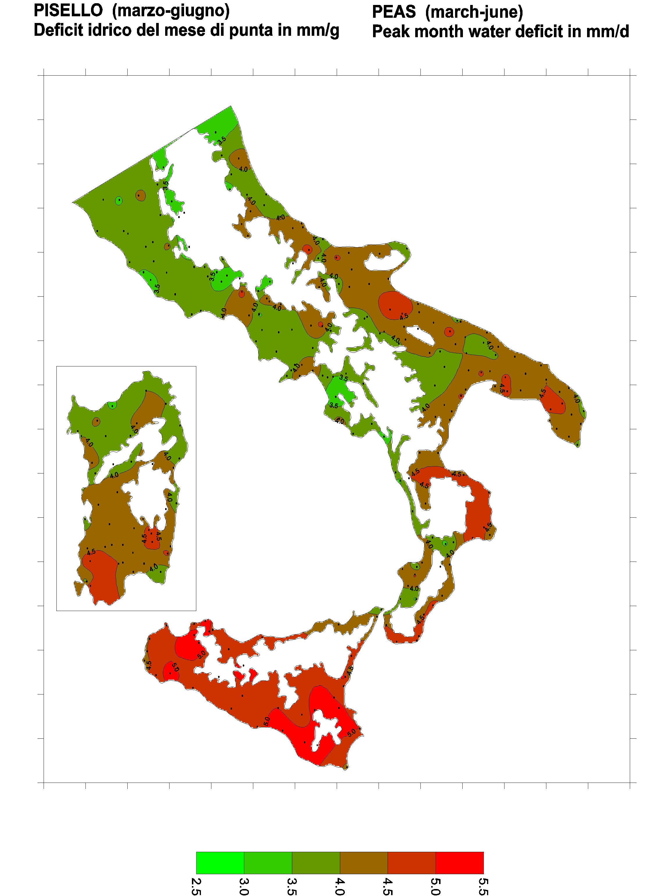 The water deficits mapped refer to a selection of crops cultivated in the periods of the year typical of Southern Italy. Deficits may vary considerably according to different periods and cultivation criteria.
