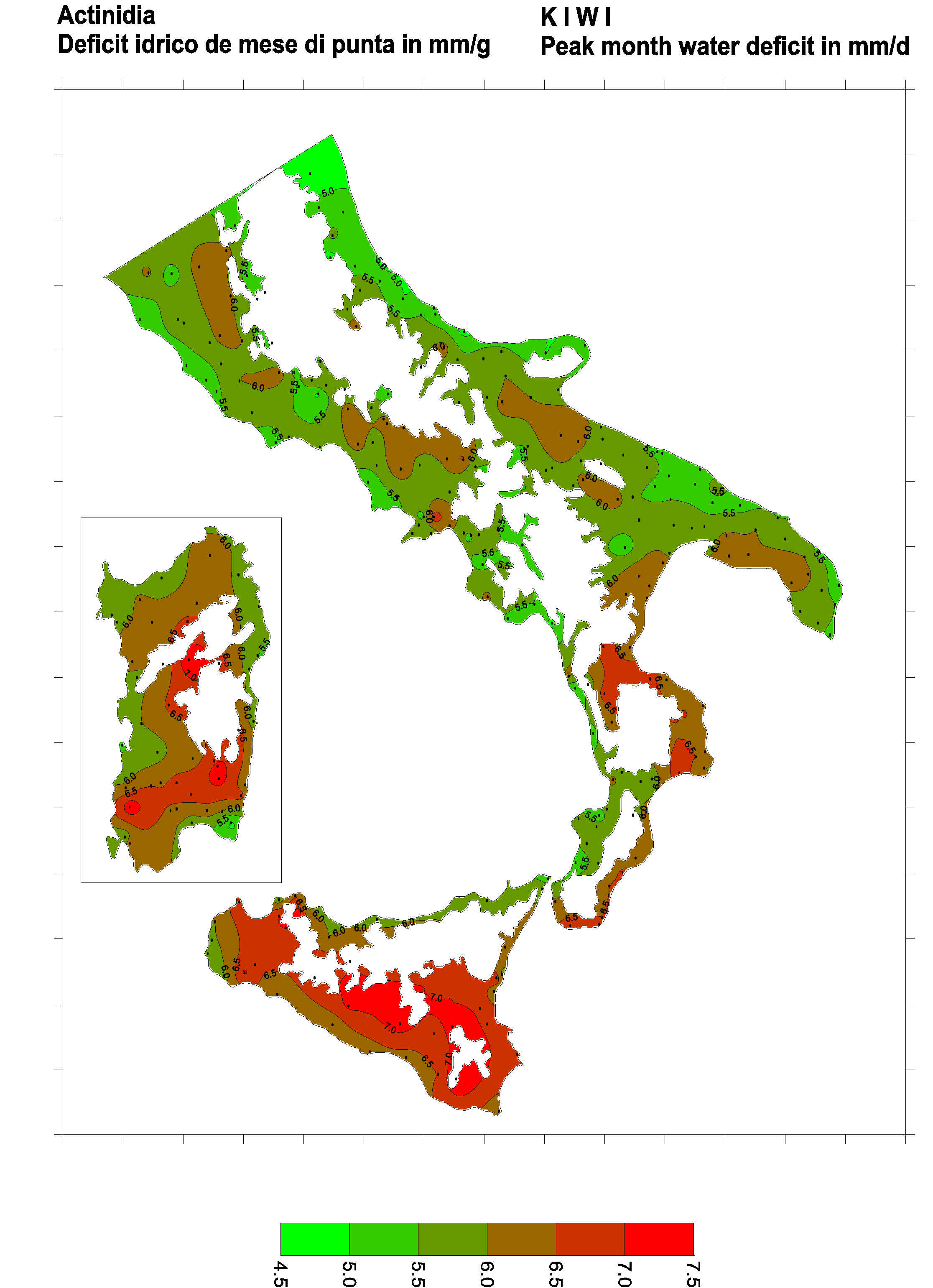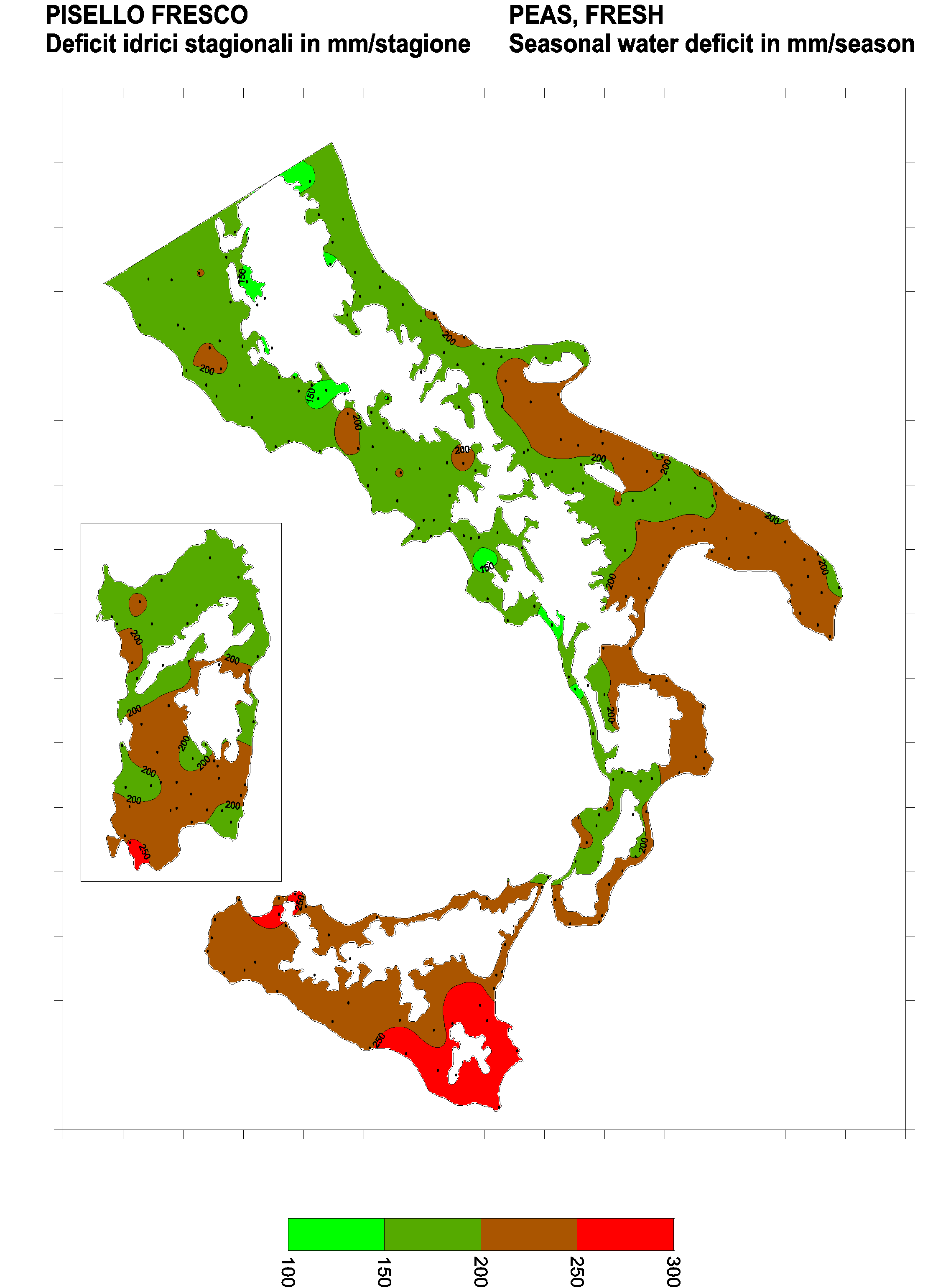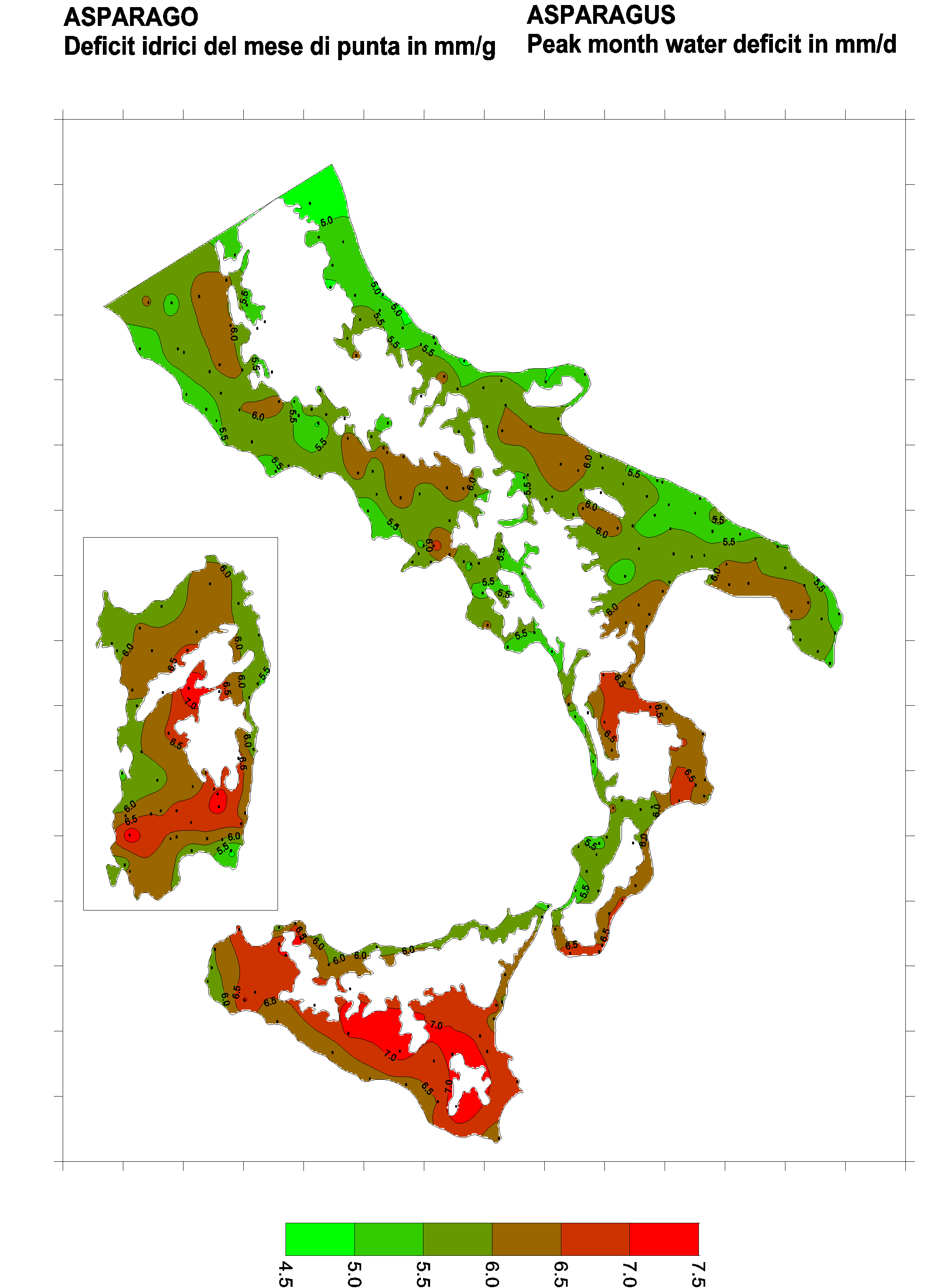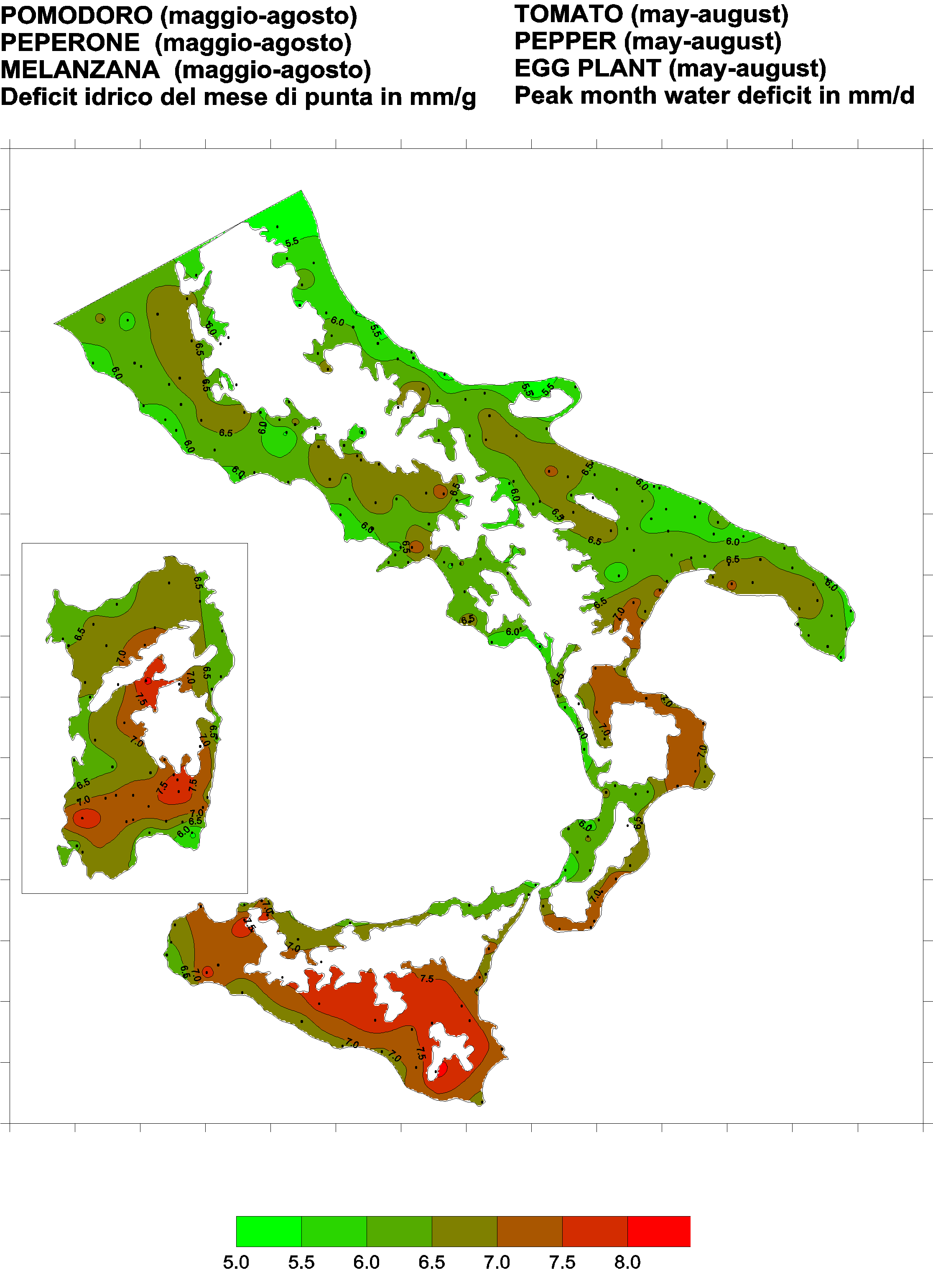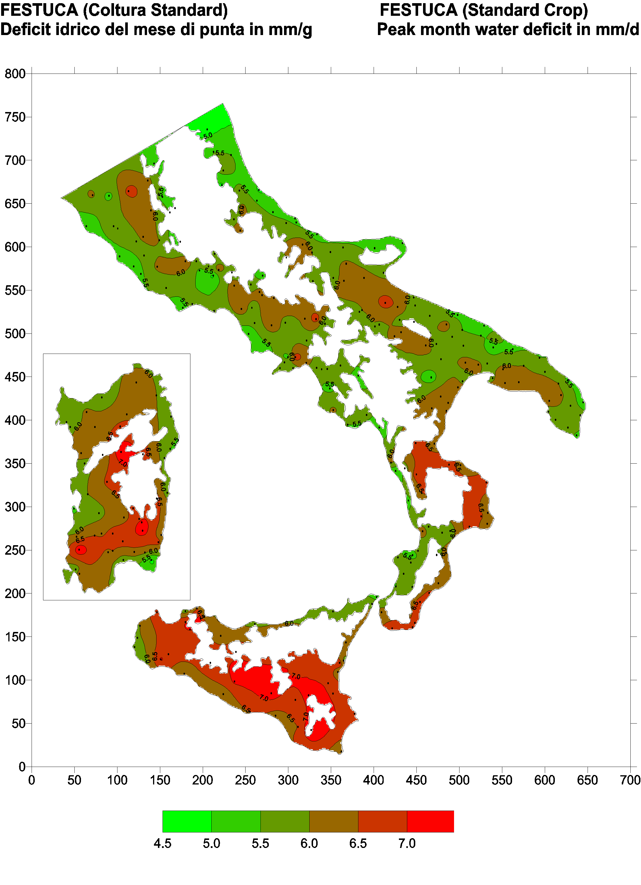 The water deficits mapped refer to a selection of crops cultivated in the periods of the year typical of Southern Italy. Deficits may vary considerably according to different periods and cultivation criteria.